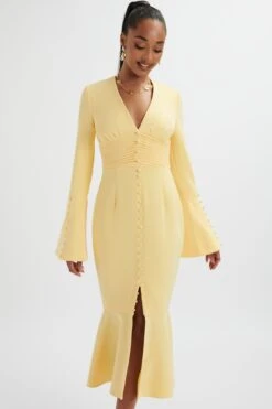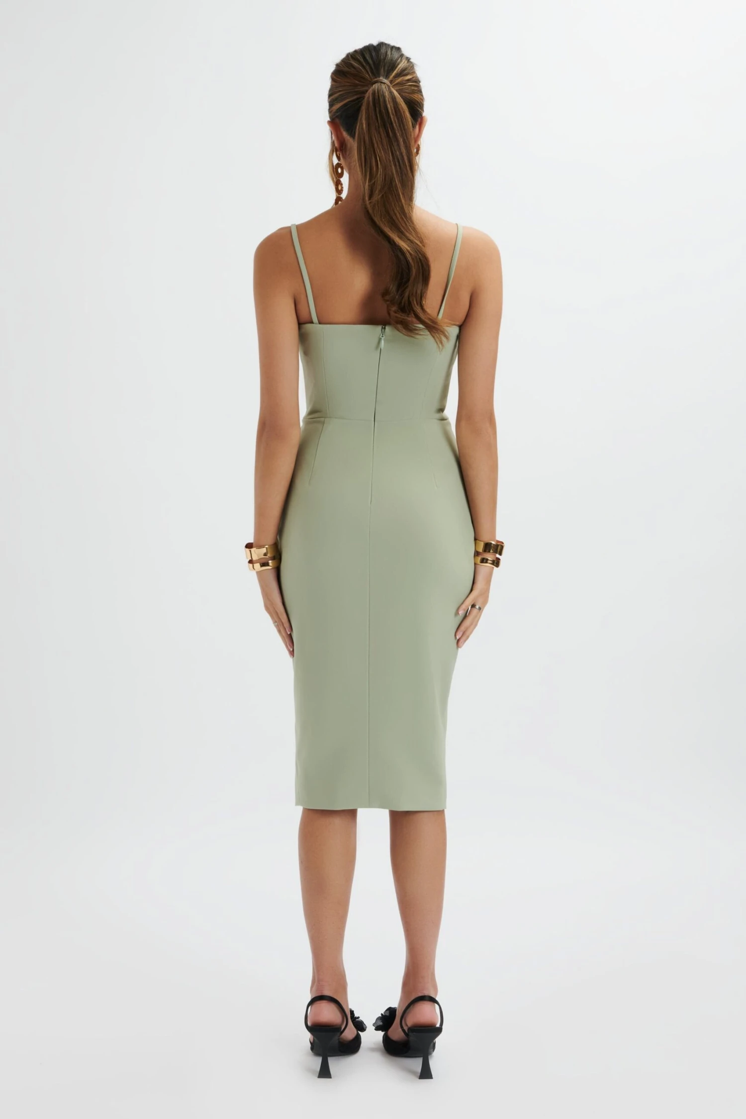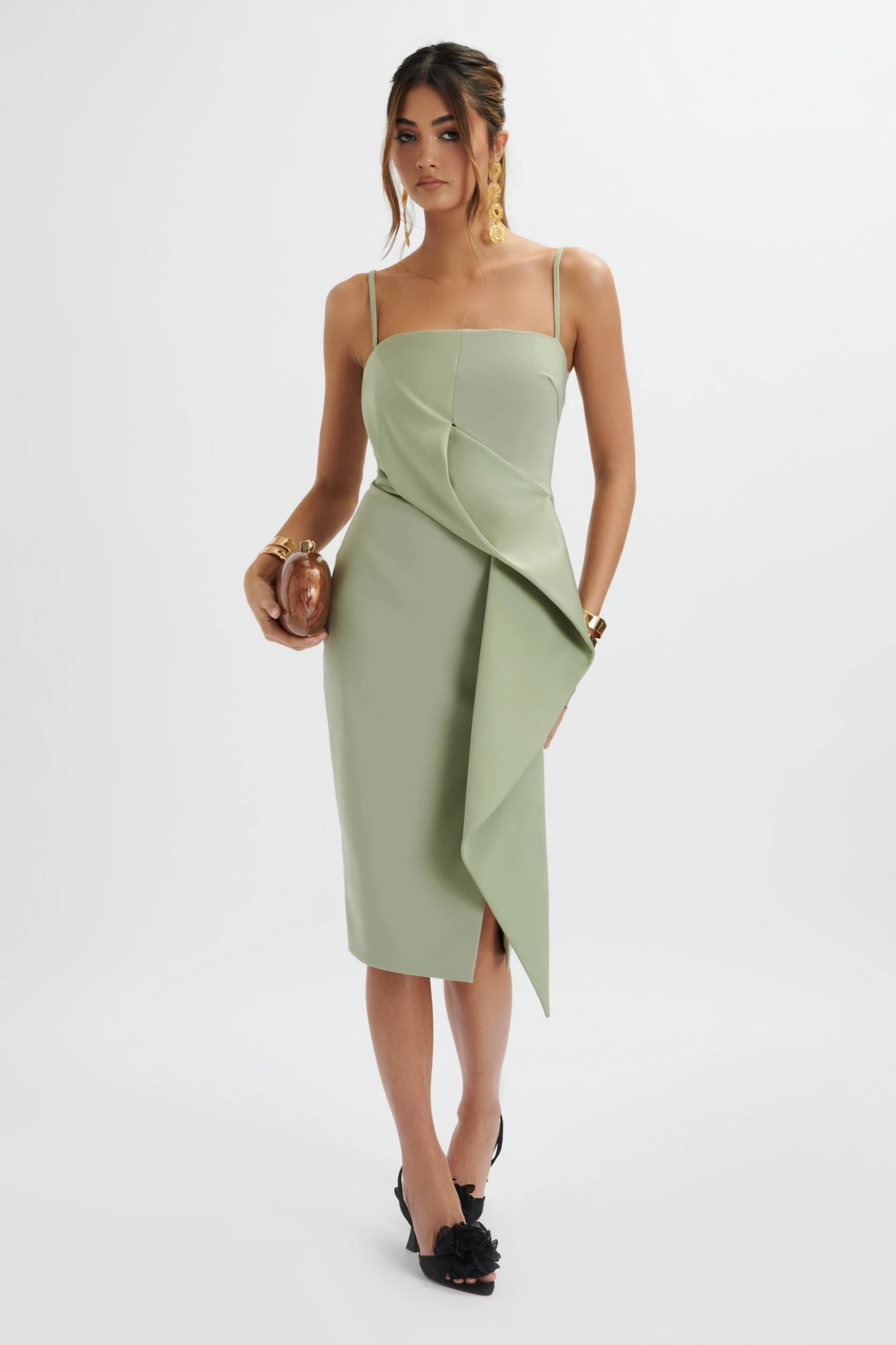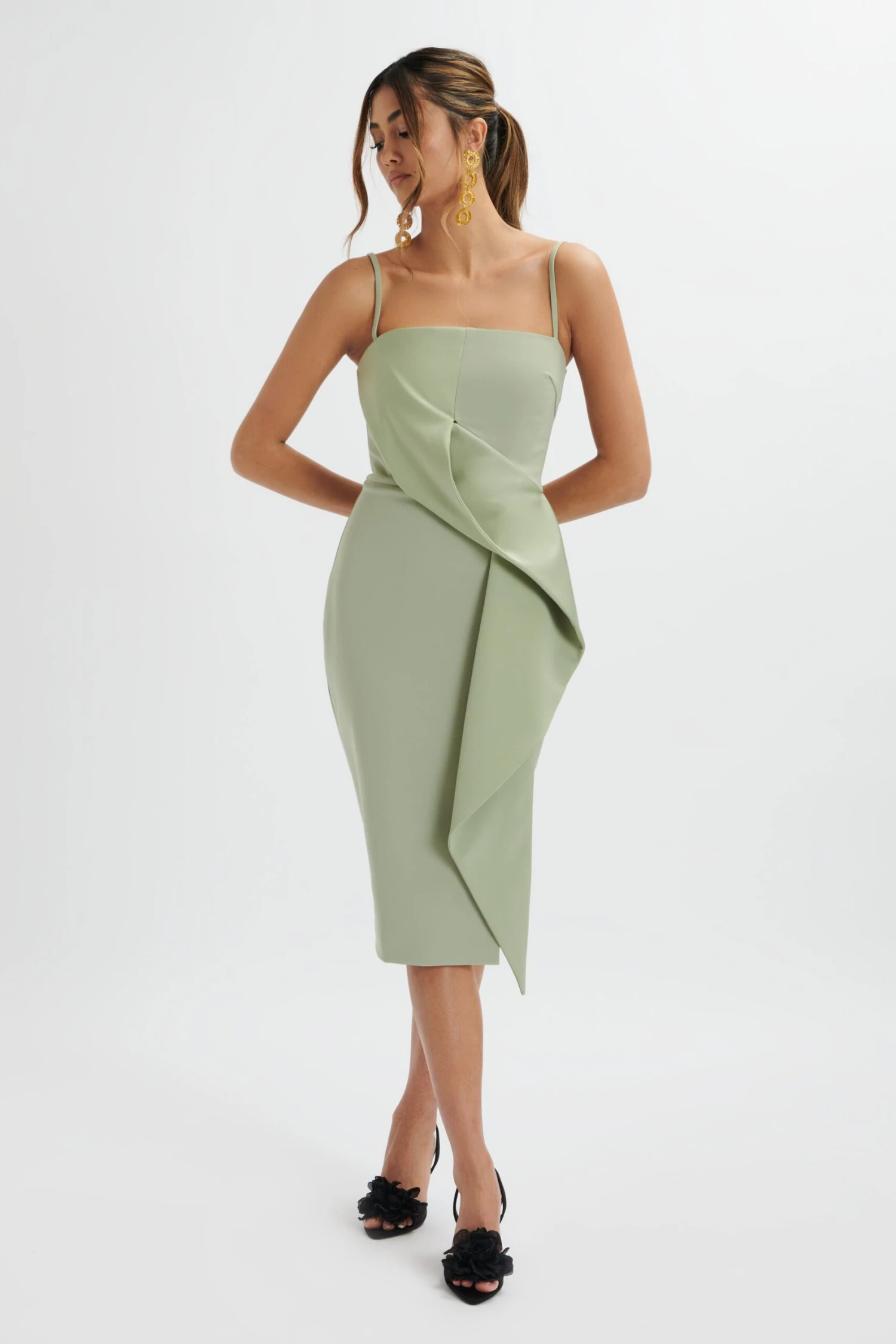 BONNIE Waterfall Frill Midi Dress In Sage Green