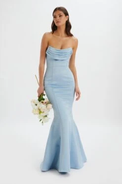 GIGI Knitted Ribbed Open Back Midi Dress In Cornflower Blue