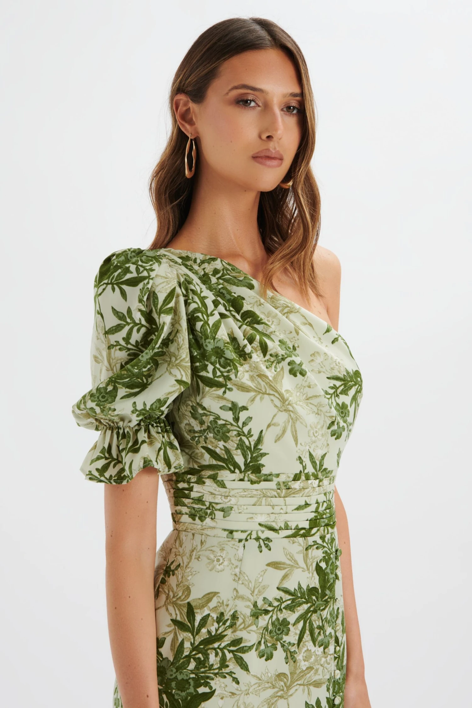 Incorporate floral elegance into your summer wardrobe with the NAKIA Asymmetric Puff Sleeve Midi Dress. Featuring an eye-catching botanical print and an asymmetric puff sleeve, this midi dress effortlessly combines style and comfort. The front split adds a touch of elegance, making it the perfect summer edition to your wardrobe.
