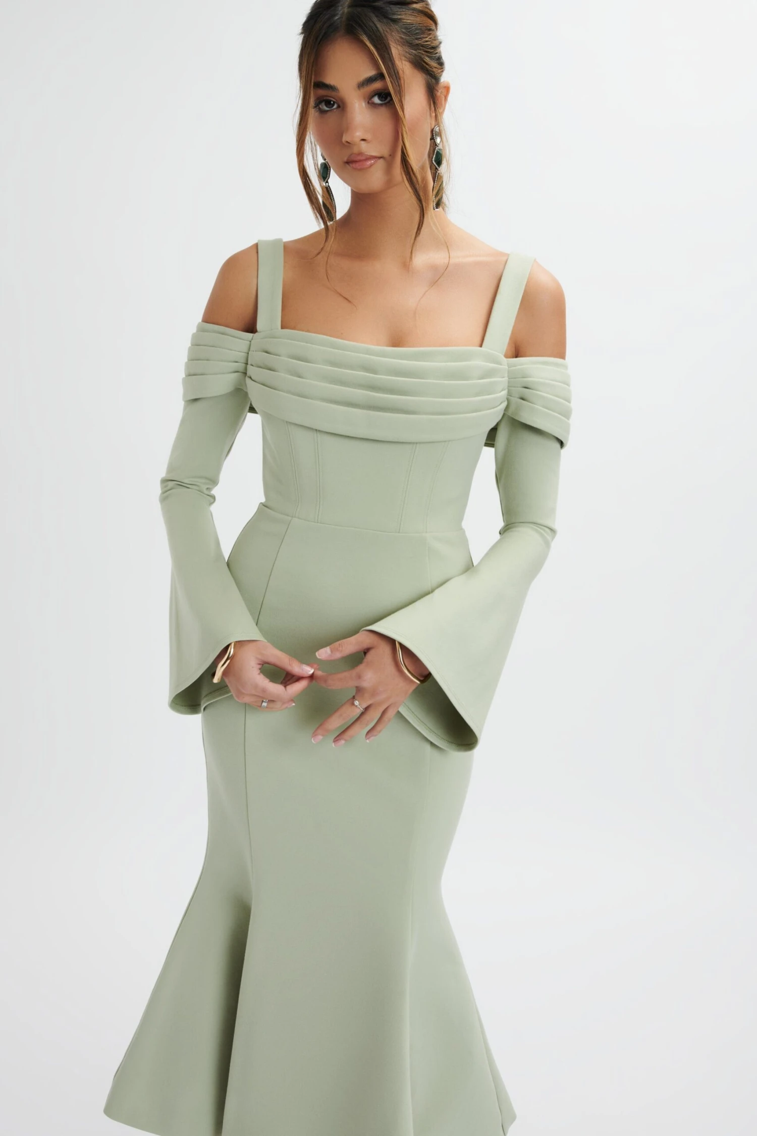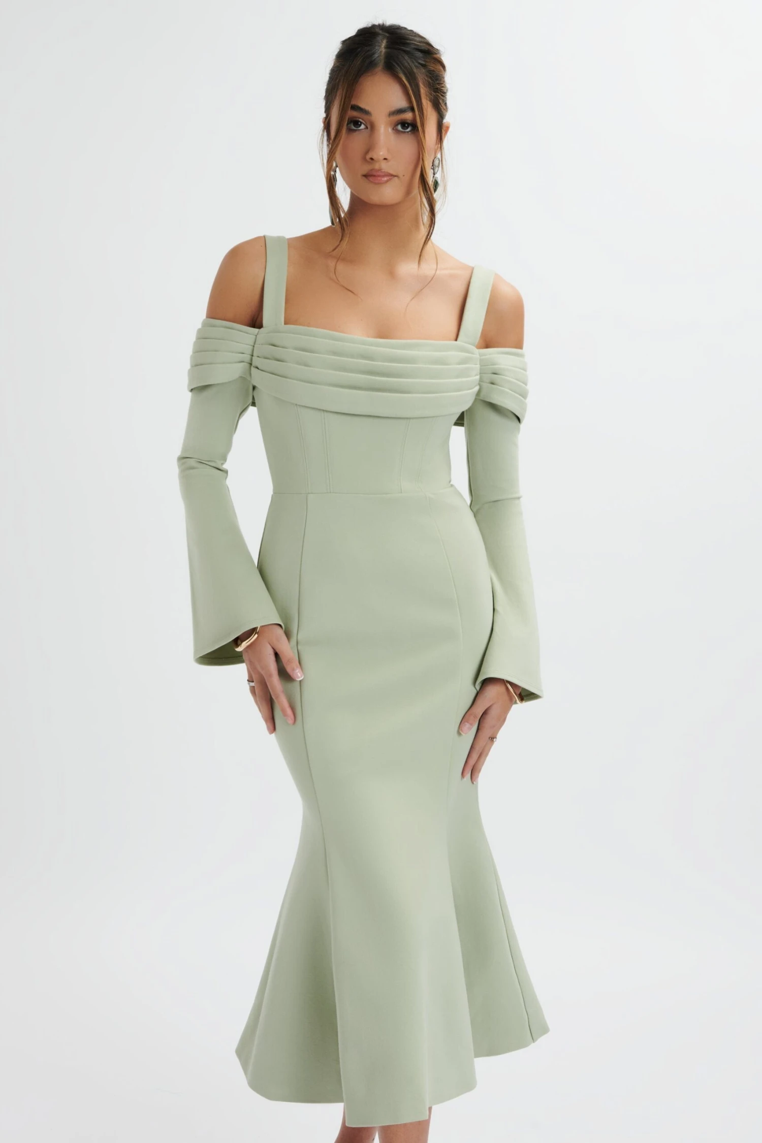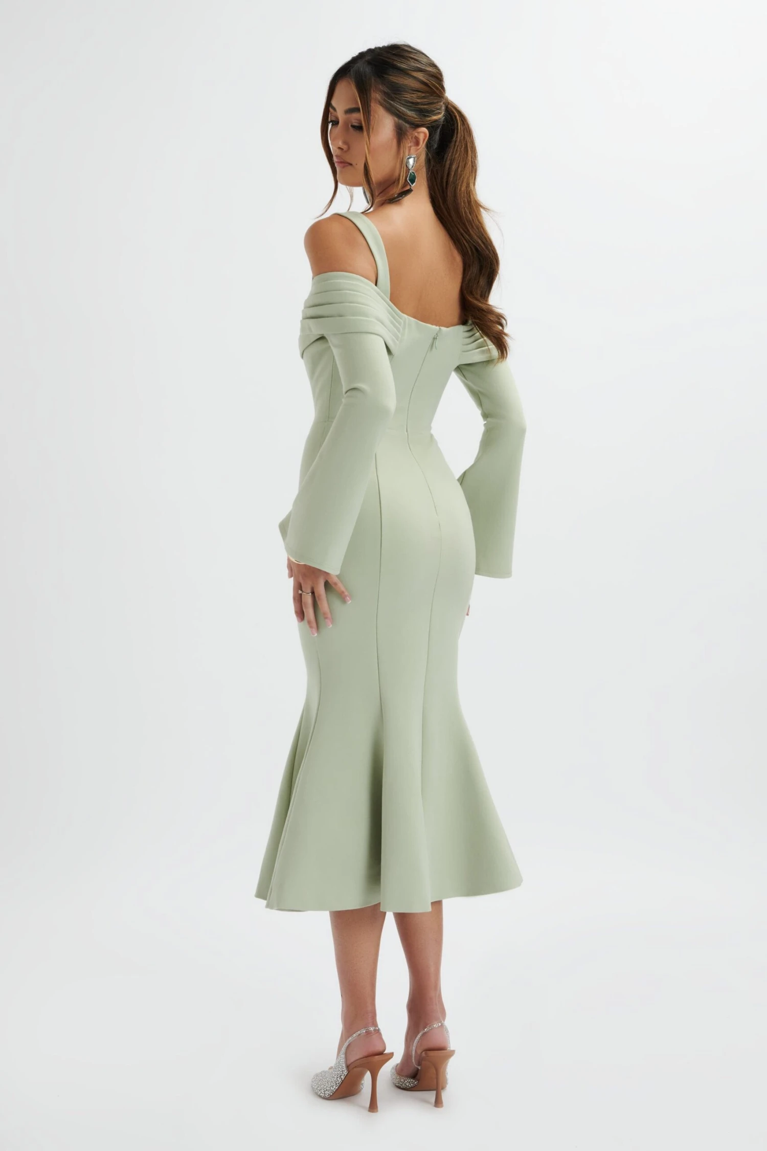 SIA Ponte Pleated Cowl Longline Midi Dress In Sage Green